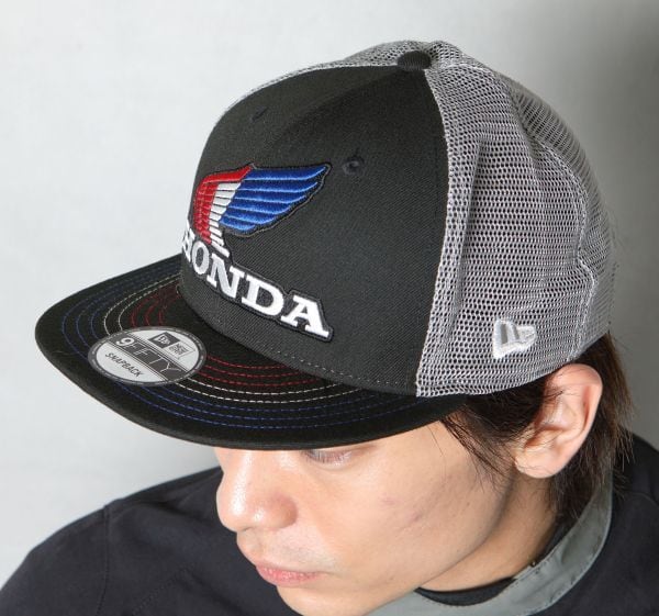 ニューエラを象徴するシルエットのモデル9FIFTY(TM)に、ホンダクラシックウイングロゴを大胆に配置したスナップバックキャップ。 バイザーステッチにワンポイントカラーを採用したカジュアルなデザイン。サイドにはニューエラロゴを配置。